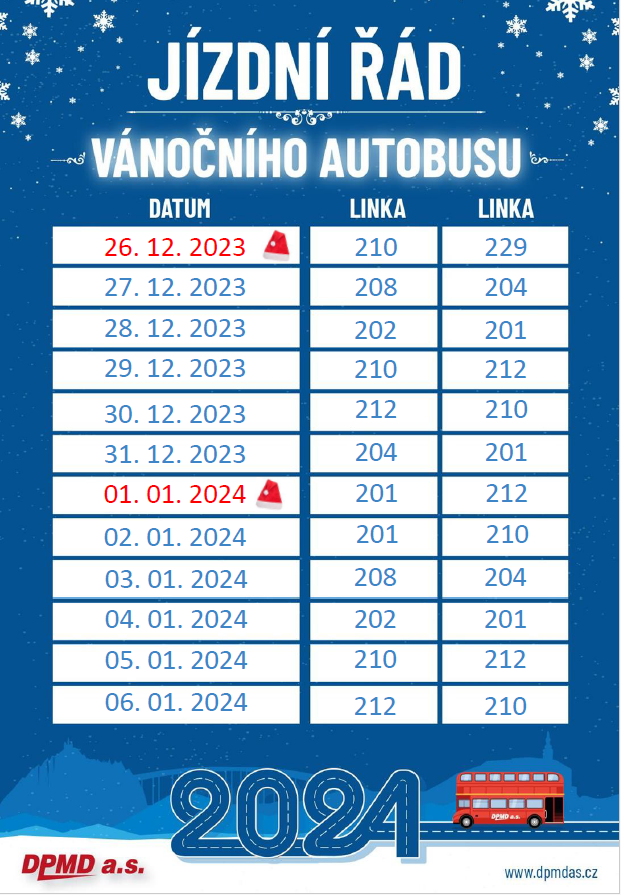 Informace o provozu vánočních autobusů je uveden v informačním letáku